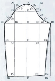 Строим вертикаль через точку А. АВ = А8В2 (величина с чертежа полочки пальто) - 3 см. (Пример: 19 см-3 см = 16 см.) АС = длина руки до локтя (Дрл ). (Пример: 31 см.) AD = длина рукава (Др ) + прибавка. (Пример: 58 см + 2 см = 60 см. Подробнее...
